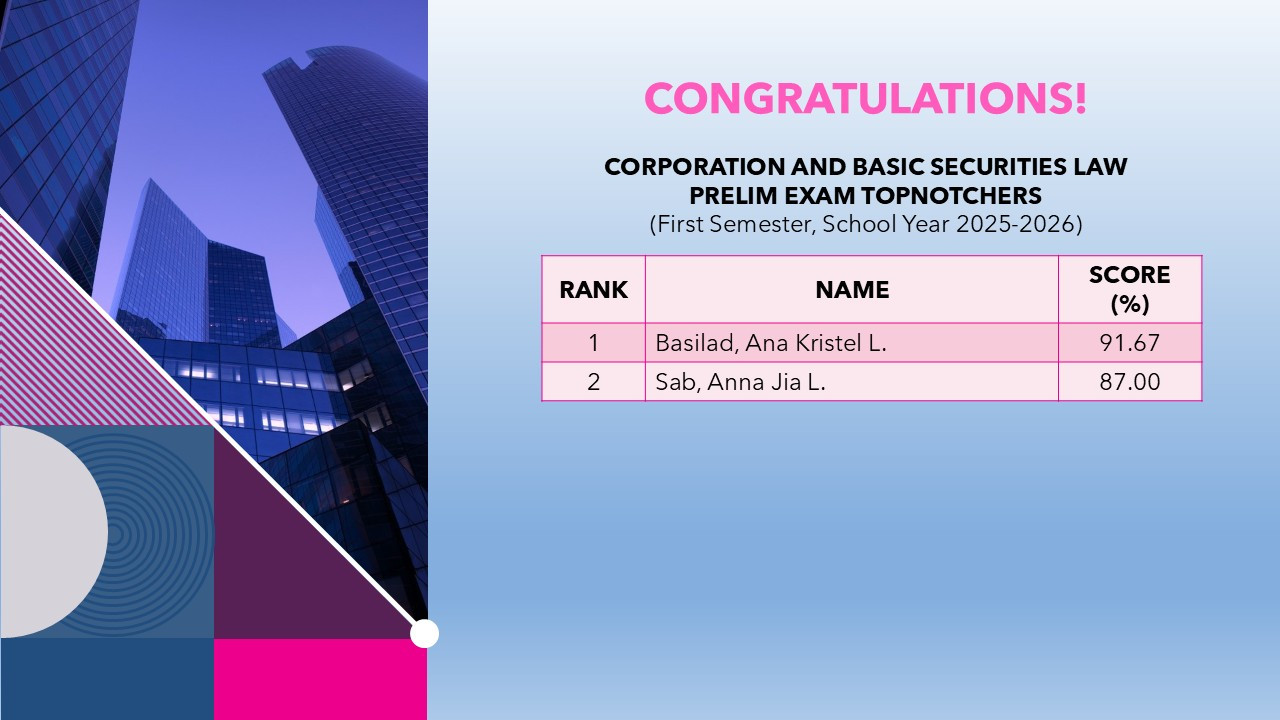 Prelim Exam Topnotchers - Corporation and Basic Securities Law